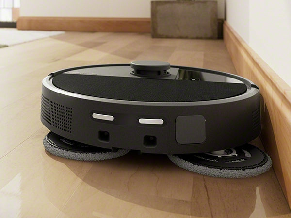Tömmer automatiskt skräp och tvättar och torkar golvtrasor med varmluft DualClean™-golvtrasor med PerfectEdge® Kraftfull dammsugning, noggrann moppning AI-tekniken PrecisionVision™ + ClearView™ Pro LiDAR